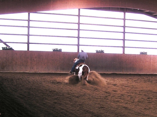 "Leider war der Hallenboden diesmal nicht wie üblich nur schlecht für Reiner, sondern katastrophal." Der neue Boden ist absolut rutschfest und tief, so das die verantwortungsbewussten Reiter ihre Pferde nicht gestoppt haben. So konnte auch Spider seine vorzüglichen Stops nicht zeigen.