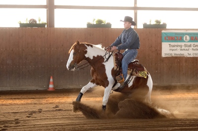 diesmal mit Daniel Klein aus Bünde von der Riverlane Ranch in der Senior Reining und in der Reining Maturity