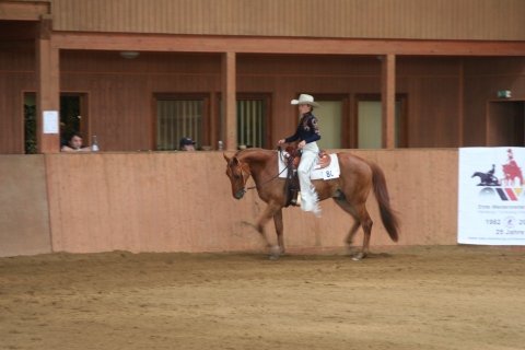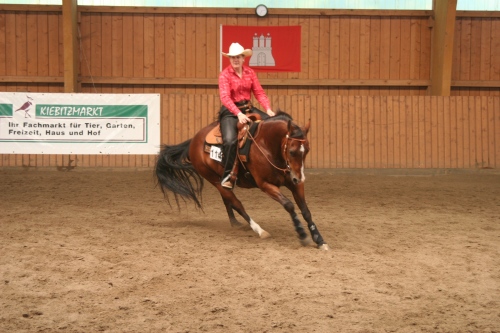 Pleasure gestartet und auf Anhieb den 3. Platz erreicht. Mit Olenas Lucky Luke erreicht sie den 4. Platz in der Reining und den 1. Platz in der Horsemanship bei 23 Startern.