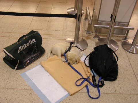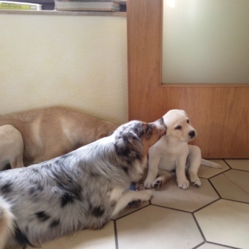"Miss Marple" ist aus Swansea, Wales eingetroffen. Mit 7,6 kg durfte sie gerade noch mit uns inder Kabine mitfliegen. Nach der anstrengenden Reise hat sie sich bei uns prima eingelebt und Merle hat eine neue Aufgabe: Baby sitten